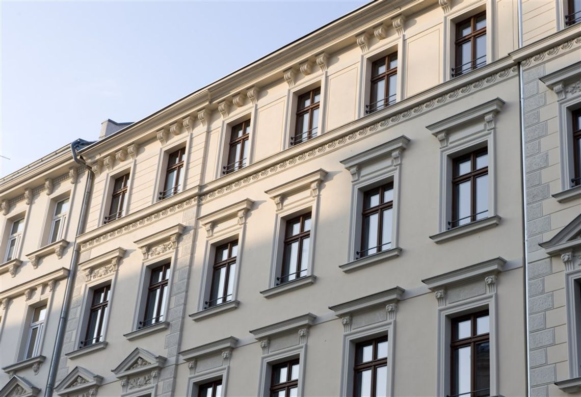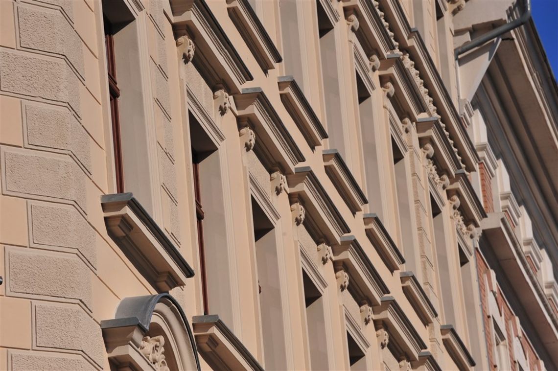 Die Oststrasse 43 wurde ca. 1871 als Eckhaus errichtet. Auffallend ist die sehr aufwendig sanierte Fassade mit Stuckelementen, Fresken und mit Gesimsen eingefassten Fenstern. Bei der Oststrasse 43 handelt es sich um ein reines Einzeldenkmal. Die ursprünglichen Elemente wie die Fliesen im Eingangsbereich sowie die alten Treppenstufen sind aufwendig restauriert und bilden in Kombination mit den Wandmalereien im Treppenhaus ein harmonisches Gesamtbild.